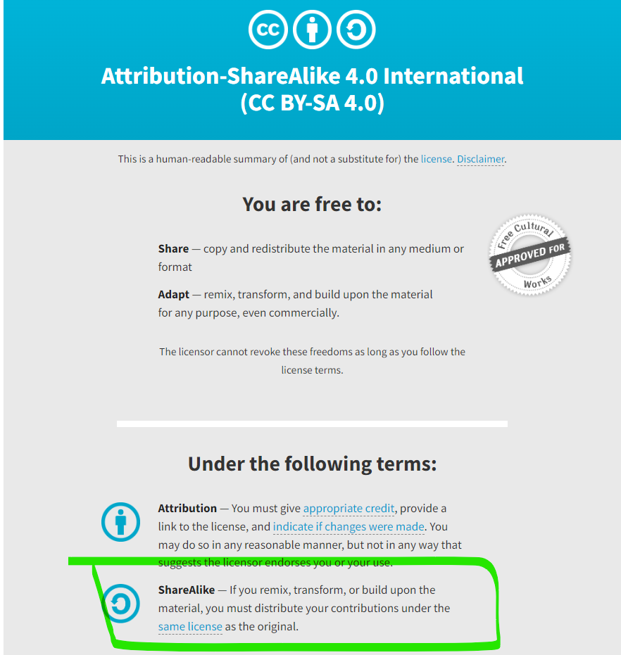 Below is an image of what you'll see when you click on the CC license link. It's always divided into two parts: 1) What you are allowed to do with the image, and then 2) the rules you have to follow when using the image as allowed.